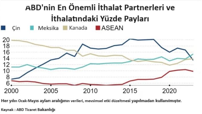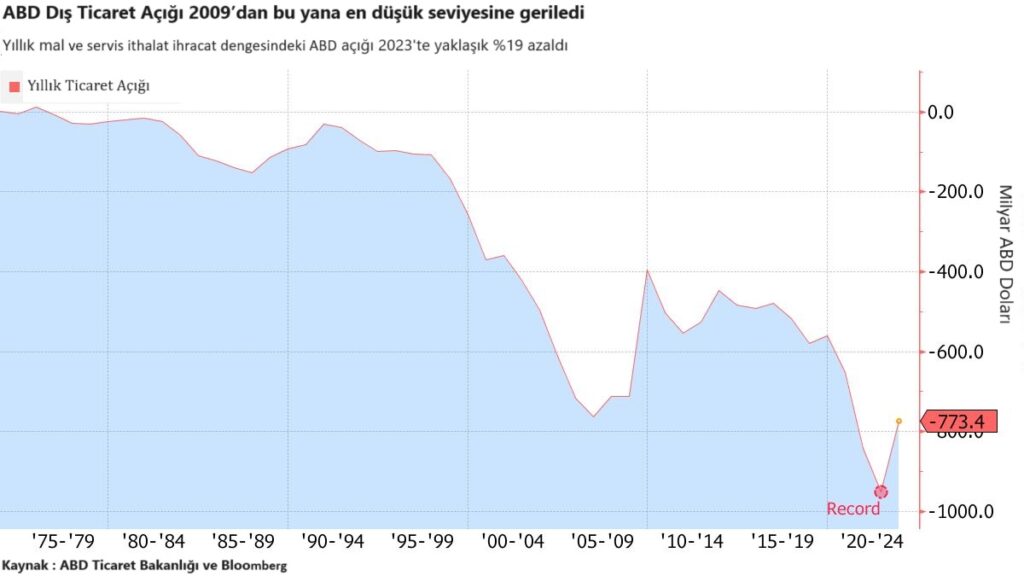 seviyesine ulaşan ABD aleyhine ticaret dengesi bu tarihte devreye giren önlemlerle yönünü değiştirmeye başlıyor. 2023’ün sonuna geldiğimizde ABD’nin Çin ile dış ticaret açığının 279 milyar dolar seviyesine indiğini görüyoruz. Trump döneminde başlayan ancak daha sonraki ABD Başkanı Biden döneminde de devam ettirilen ticari düzenlemelerin ABD hükümetler tarafından beklenen neticeyi ilk etapta vermeye başladığını söyleyebiliriz.