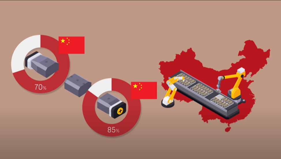 Çin'in 11. ve 12. beş yıllık planlarının, sadece elektrikli otomobil için değil enerji bağımlılığını azaltmaya yönelik teknolojileri geliştirmek üzerine stratejiler ürettiği biliniyor. Dolayısıyla bunların uygulama aşamasında yapılan detaylı çalışmaların sonuç olarak Çinli firmaların enerji dönüşümünün değer zincirindeki her halkayı ele geçirecek şekilde ve hakim olacak seviyede etkin pazar oyuncuları haline getirdiğini görüyoruz. Elektrikli araç tarafına baktığımızda Çin önemli bir batarya imalat kapasitesi oluşturmuş daha sonra da bataryanın komponentleri üzerine yoğunlaşmıştır. Ancak zincirin tamamını kapsamak üzere bataryayı oluşturan minerallerin de gerek maden alanında gerekse de rafineri konusunda yoğun yatırımlarla 2010 yılından bu yana dünyada liderliğini ezici şekilde ele almış durumdadır. Bu liderlik o seviyeye gelmiştir ki bataryanın hücrelerindeki 2 elektrik kutbunu ifade eden anot ve katot üretiminde rekabet edebilecek başka bir ülke gözükmemektedir. Bugün itibariyle batarya hücrelerindeki anotların % 85’i ve katotların % 70’i Çin Halk Cumhuriyeti'nde imal edilmektedir. Bu nokta çok önemli çünkü dünyanın herhangi bir tarafında satın aldığınız bataryanın elektrikli araçta veya başka bir elektrikli cihaz da kullanılması önemli değil, en azından anot ve katodunun veya diğer bileşenlerinin Çin'den geldiğini söyleyebiliriz.