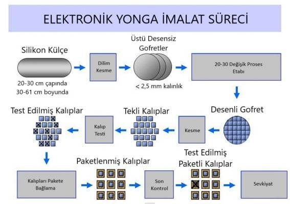 Elektronik yonga imalatı çok gelişmiş bir teknolojidir. Gofretlerin üzerine yerleştirilen elektronik parça sayısı binlerle ifade edildiğinde ne kadar dar bir alana ne kadar çok işlem kapasitesi yerleştirildiği daha iyi anlaşılabilir. TMSC’nin bu imalat kapasitesi ve teknolojisinde en yakın rakiplerinden en az iki yıl önde olduğu ifade edilmekte ve ABD, Çin, Japonya ve Avrupa bu firmayı kendi topraklarında imalata ikna etmeye çalışmaktadır. Şu ana kadar ABD ve Japonya’da birer yeni fabrika kurulacağı da teyit edilmiştir.