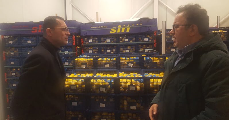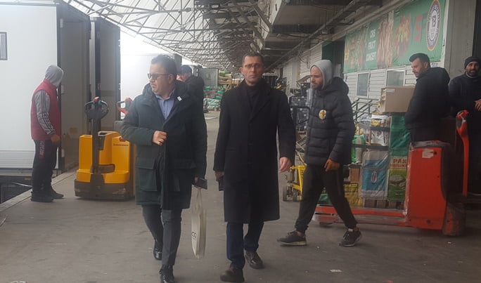 İşadamı Hakan Sin, Ürdün heyetine Balkanların en büyük Yaş Meyve ve Sebze Hali olan Su Market halindeki diğer stantları da gezdirdi.