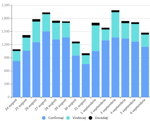 6 Eylül itibarı ile Romanya’da ulusal düzeyde yapılan testlerin ardından, son rapora kıyasla, daha önce pozitif testi olmayan vakalar olan SARS - CoV - 2 (COVID - 19) ile enfekte 1.150 yeni insan vakası kaydedildi.