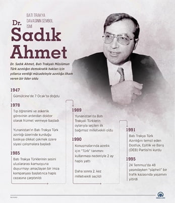 *Yurtdışı Türkler ve Akraba Topluluklar Başkanlığı (YTB), Yunanistan'daki Batı Trakyalı Müslüman Türk azınlığın demokratik hakları için yıllarca mücadele eden merhum Dr. Sadık Ahmet için doğumunun 75'inci yılında anma programı gerçekleştirdi
