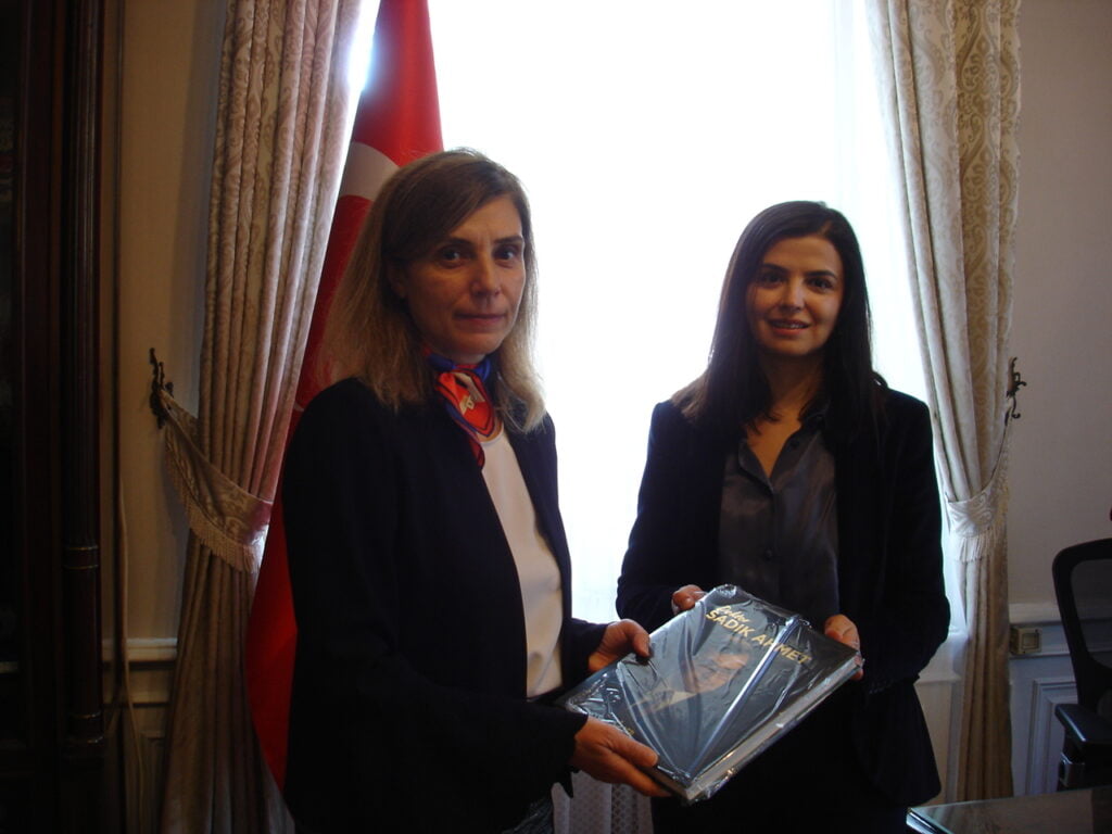 Bükreş Eğitim Müşaviri Prof. Dr. Serpil Murtazaoğlu’nun da hazır bulunduğu ziyaret sırasında Büyükelçi Aramaz, Romanya ve ilişkilerimiz hakkında heyete aydınlatıcı bir konuşma yaptı. Heyet Başkanı Pehlivan da Türkiye Bursları hakkında Büyükelçi Aramaz’a bilgi aktardı.
