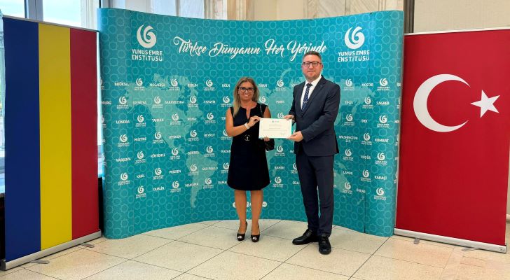 Bükreş Yunus Emre Enstitüsündeki farklı seviyelerdeki kursları tamamlayarak uygulanan sınavlarda başarılı olan kursiyerler ile Yunus Emre Enstitüsü tarafından Romanya'da yürütülen Kamu Çalışanlarına Türkçe Öğretimi Projesi (KATÖP) kapsamında çevrim içi Türkçe kurslarına katılarak başarı gösteren üst düzey kamu görevlilerine sertifikaları takdim edildi.