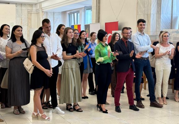 Romanya Parlamento Sarayının Constantin Brancusi Sergi Salonunda gerçekleştirilen sertifika törenine başarılı olan öğrenciler, öğrencilerin aileleri ve çok sayıda davetli katıldı.