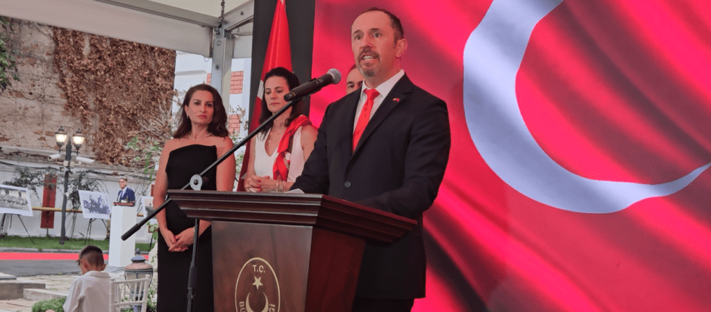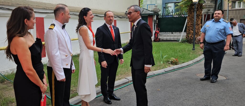 Büyükelçilik ikametgahında verilen resepsiyonda Büyükelçi Özgür Kıvanç Altan, Bükreş Silahlı Kuvvetler ve Deniz Ataşesi Dz. Alb. Yavuz Alper Kara ve eşleri ile Baş Katip Ufuk Türkkan davetlileri karşıladı.
